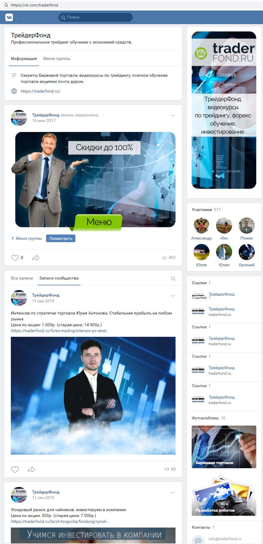 - Жулики Трейдер Фонд зарегистрировались в российской социальной сети Вконтакте