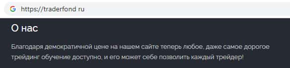 Мошенники Трейдер Фонд опубликовывают совершенно бесполезные статьи, а именно о том, чему при желании можно научиться и без обучающих курсов. В действительности онлайн-ресурс аферистов TraderFond Ru предназначен для того, чтобы люди покупали то, что можно получить в бесплатном доступе.