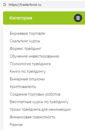 На какие категории подразделяют шулера Трейдер Фонд свою якобы обучающую информацию?