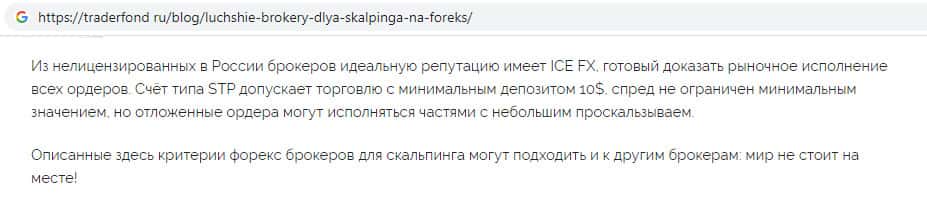 Шарага Трейдер Фонд не несет никакой ответственности за Ваши утраченные денежные средства на сайтах перечисленных скам-брокеров. Так же аферисты рекомендуют скам-контору ICE FX, которая не имеет и намека на наличие лицензии. Доверять сомнительным компаниям не рекомендуем, тем более тем, которые рекомендуют шулера TraderFond Ru !!!