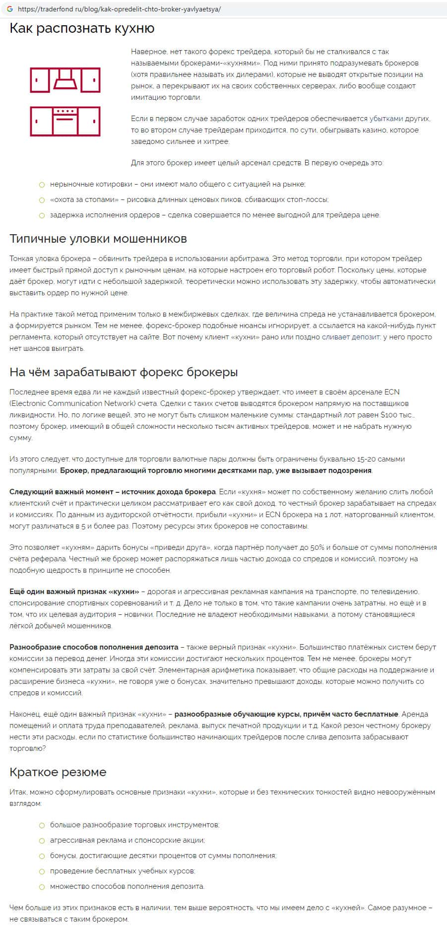 Шулера TraderFond Ru всячески втираются в доверие, опубликовывая на своем интернет-портале различные статьи о форекс-кухнях и как их распознать. Не ведитесь на мошеннические уловки Трейдер Фонд, поскольку для того, чтобы распознать кухню просто необходимо перейти по ссылкам якобы брокеров, с которыми они предлагают связаться !!!