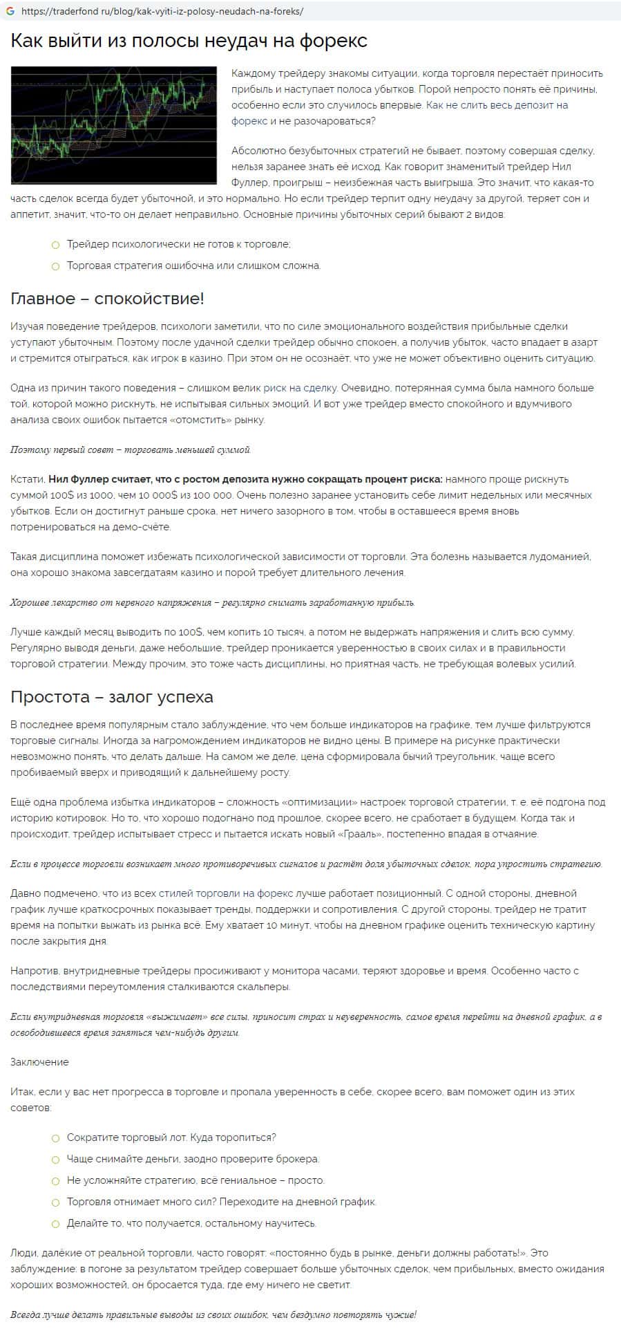 - Аферисты TraderFond Ru на своем дырявом сайте разместили якобы полезные статьи о психологии трейдинга