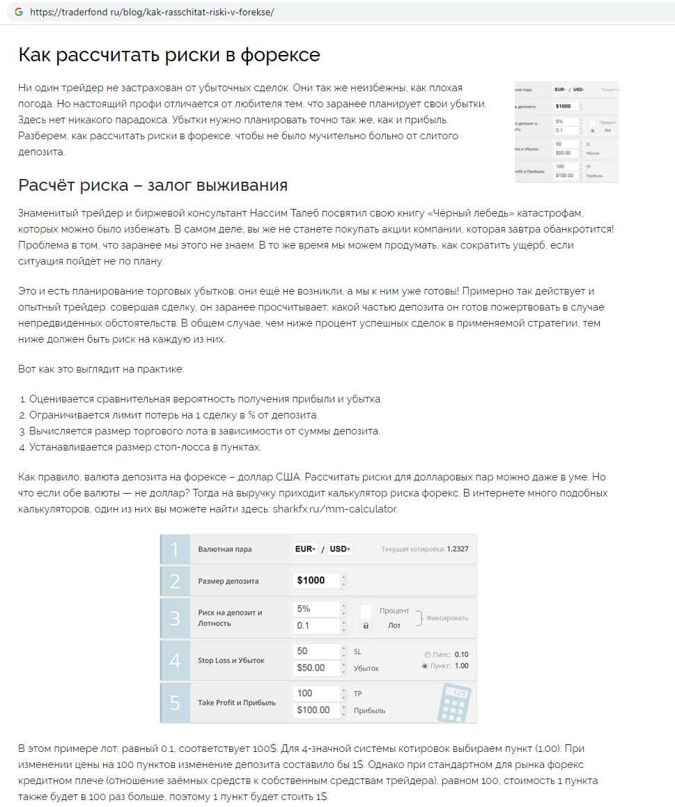 - Шулера Трейдер Фонд пишут о важности подсчета рисков, а так же подсчета возможной прибыли