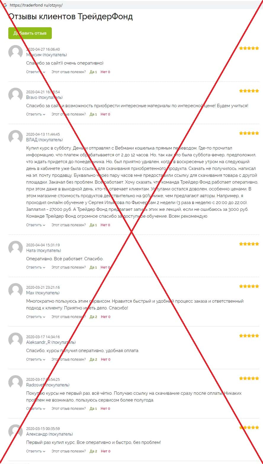 - Фейковые пользовательские отзывы о скам-организации Трейдер Фонд