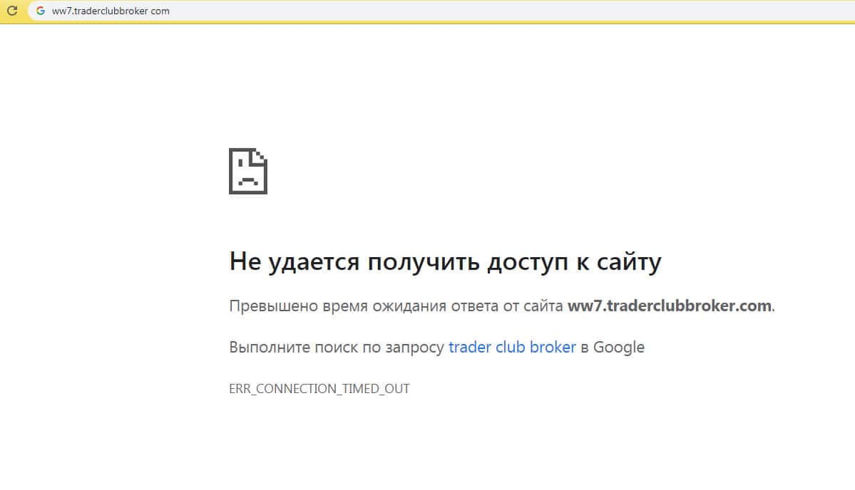 Сайт шулеров Trader Club Broker перестал работать, так как проходимцы соскамились