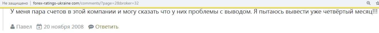 На ниже расположенном изображении вы можете увидеть и прочесть еще один реальный негативный комментарий в сторону аферистов Trader Club Broker, который связан с тем, что жулики Трейдер Клуб Брокер попросту не выводят средство наивной клиентуре, так как их кухня работает исключительно на ввод и сливает средства пользователей.