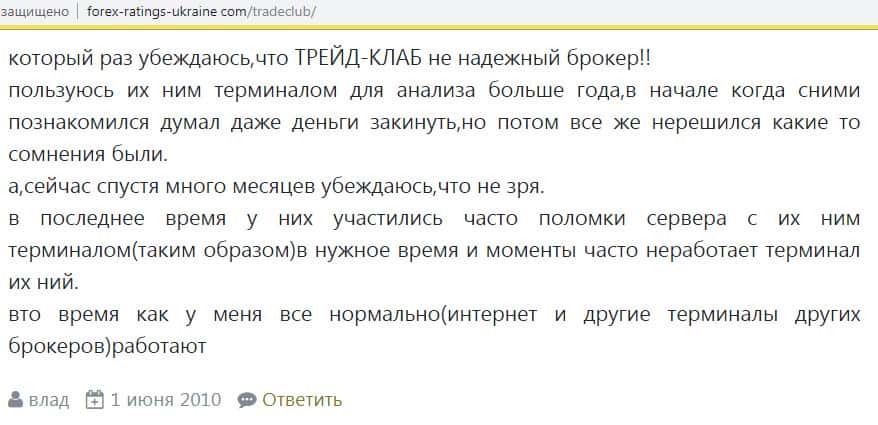 - Остатки отзывов о лохотроне Trader Club Broker в Интернете