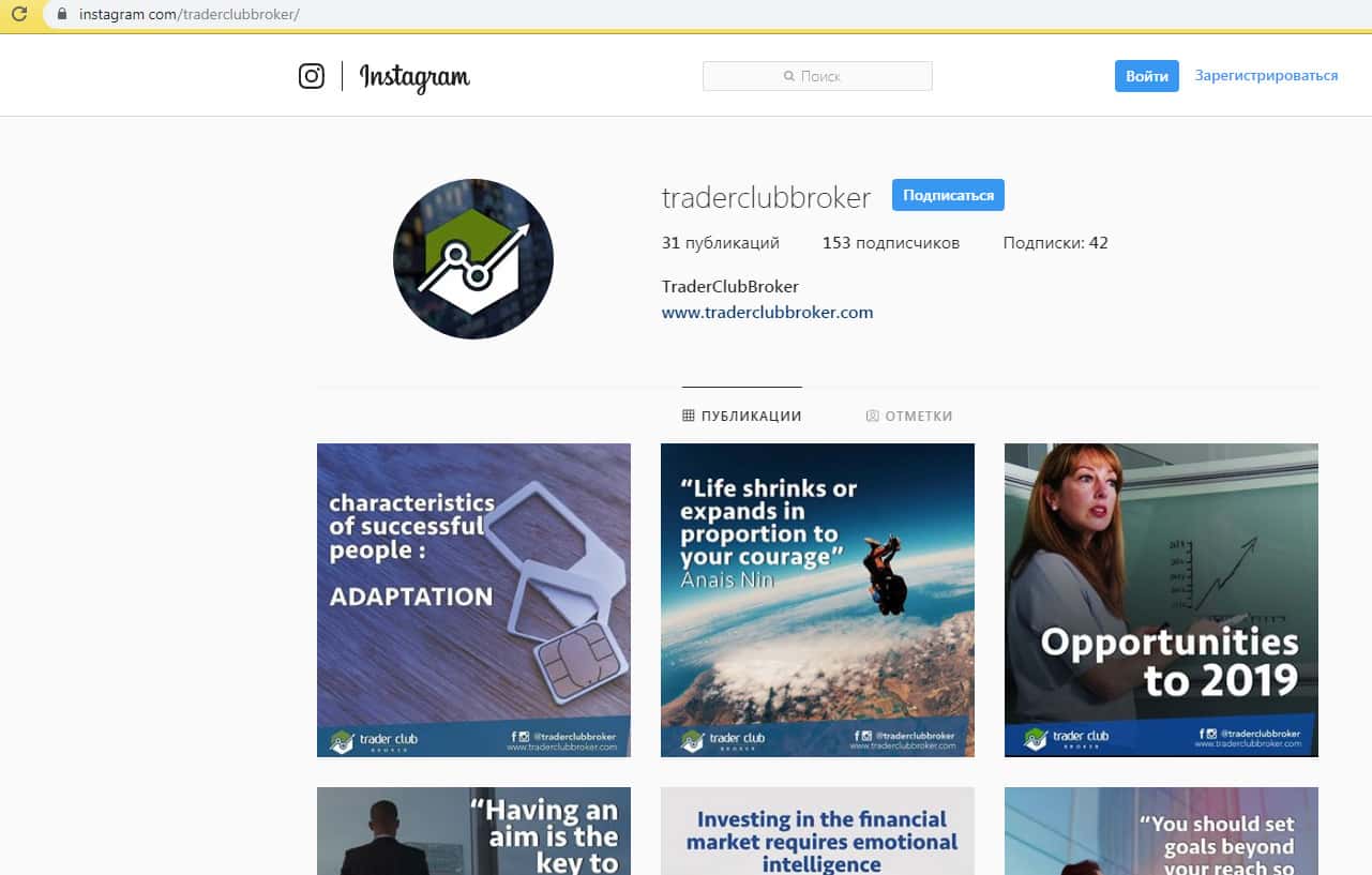 На удивление, мошенники Trader Club Broker не избавились от страничек в социальных сетях. На изображении ниже можно наблюдать страничку в социальной сети Инстаграм instagram com/traderclubbroker, но, увидев, что в подписчиках всего 153 человека, можно сделать вывод о том, что Трейдер Клуб Брокер - настоящие аферисты!