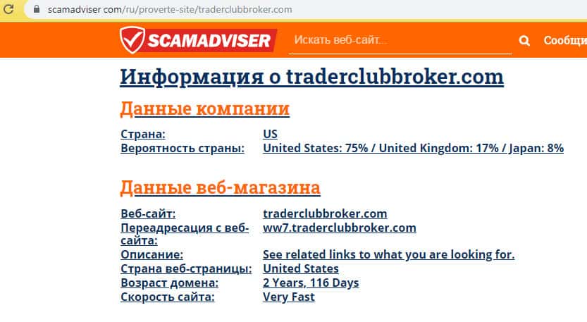 - Как оказалось аферисты Trader Club Broker предпочитают анонимность