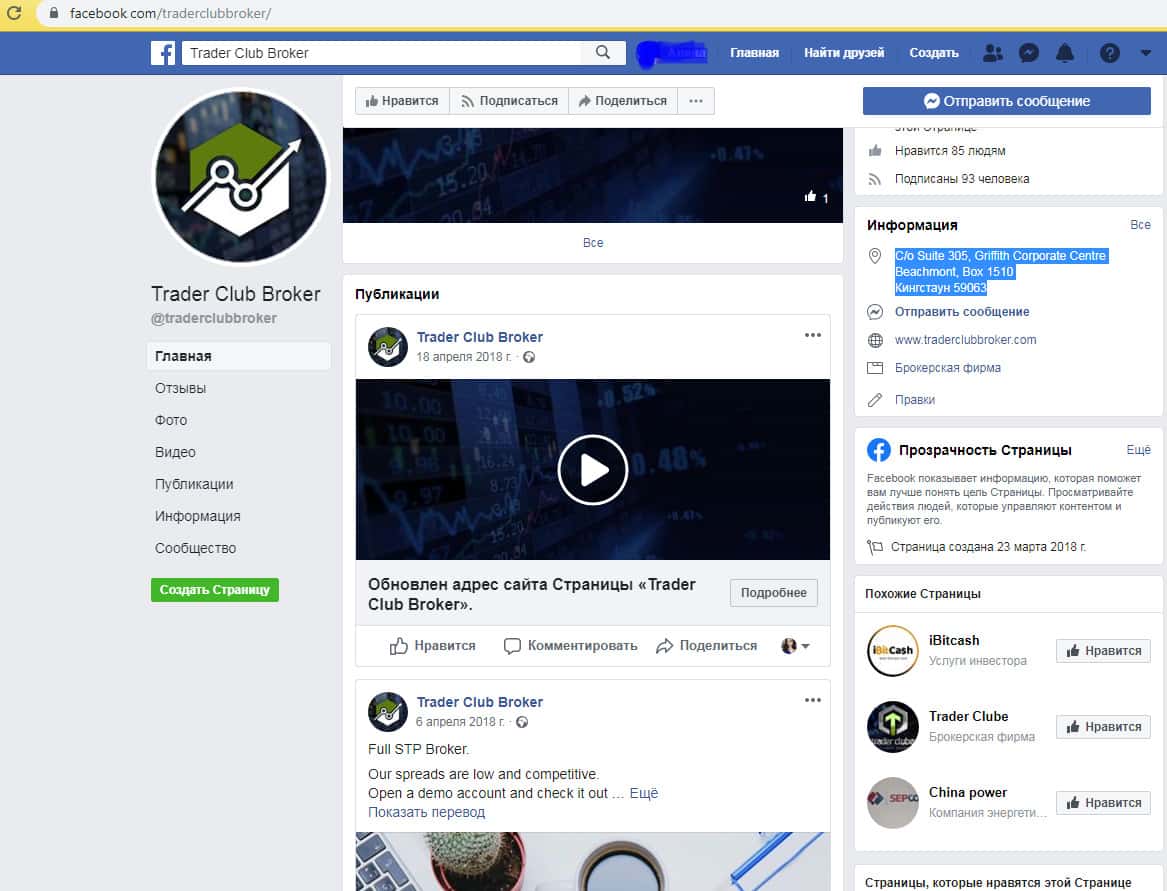 Далее была найдена страничка на Фейсбук facebook com/traderclubbroker, которая также не дает никаких убеждений в том, что они серьезная брокерская контора. Поэтому делаем вывод, что Трейдер Клуб Брокер - обычные шарлатаны, использующие средства наивной клиентуры для личного заработка.