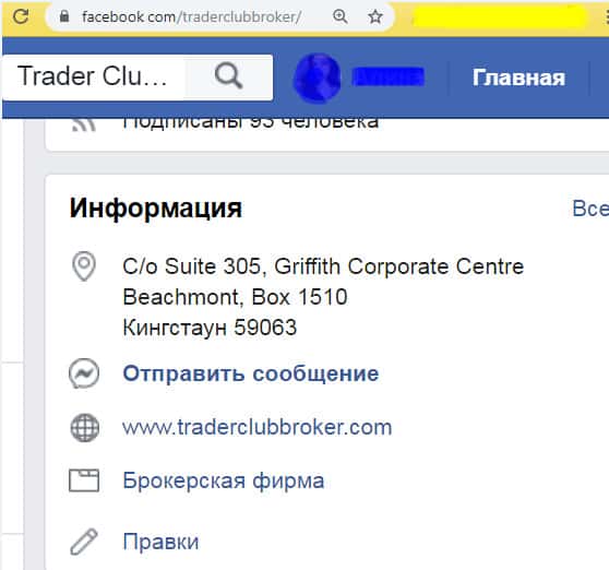 Дополнительным преимуществом для лохотрона Trader Club Broker является факт их оффшорной регистрации, а именно: C/o Suite 305, Griffith Corporate Centre Beachmont, Box 1510 Кингстаун 59063, что дает шулерам Трейдер Клуб Брокер анонимность их счетов и владельцев.