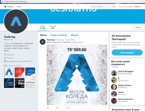 Аналогично обстоит ситуация у мошенников Trader Com в социальной сети Твиттер, в которой жулики Трейдер Ком не особо накручивали подписчиков, но и активности практически нету. На изображении ниже вы можете увидеть страницу жуликов Trader Com в социальной сети Twitter.