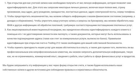 Далее аферисты Trader Com размешают перечень личной и персональной информации клиентов, которую они запрашивают, однако оставляют за собой право запросить еще больше данных вплоть до данных банковской карты и тп., о чем вы можете прочесть на изображении ниже.