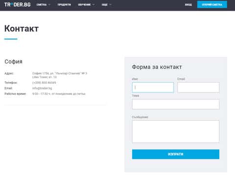 Под контакты шулера Трейдер Ком отвели целый раздел, сайта в котором находится довольно таки мало контактов, на которые жулики определенно поскупились. Зато мошенники Trader Com разместили форму для обратной связи. Сами же контакты лохотрона Трейдер Ком вы можете увидеть ниже:
