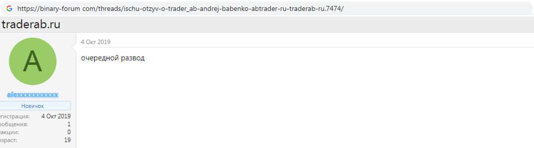 Фейковые отзывы о бинарной школе Traderab