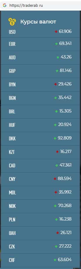 - На сайте скам-конторы Traderab имеется таблица с курсом валют