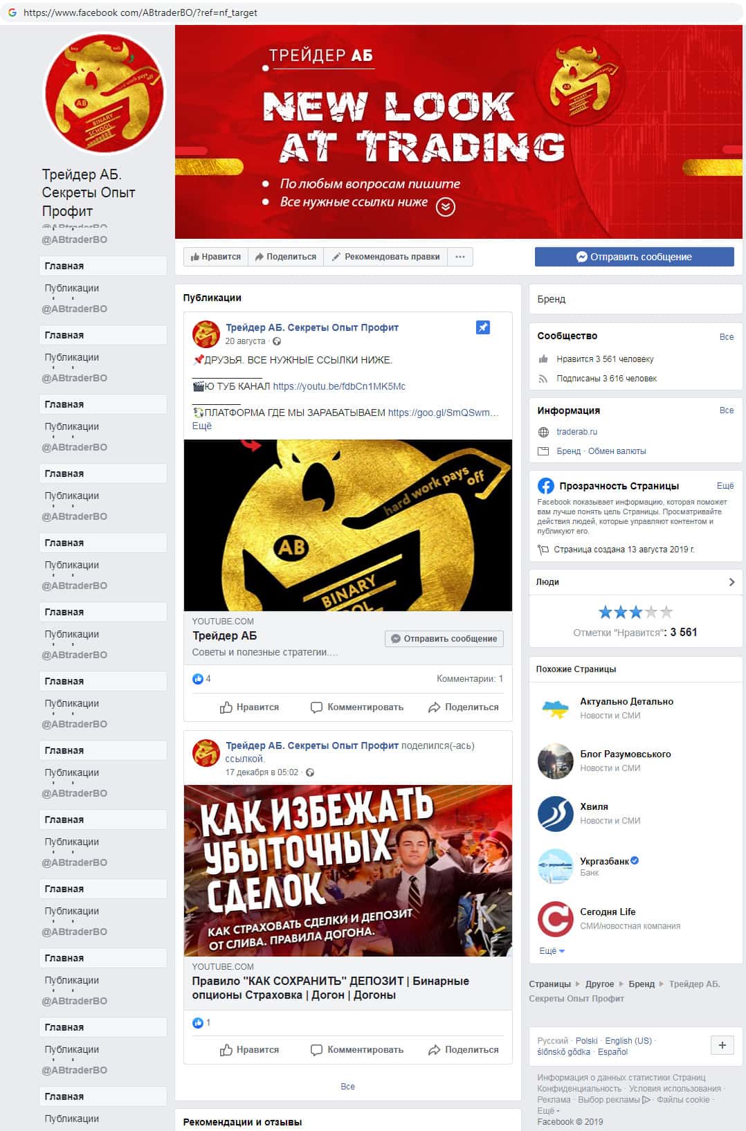 Так же у шуллеров Трейдераб есть страница в социальной сети facebook com, где конечно же имеется ссылка на их жульнический сайт. Здесь скам-контора Traderab позиционируют себя как Бренд - Обмен валюты.Так же мошенники предоставляют якобы полезные для пользователей ссылки.