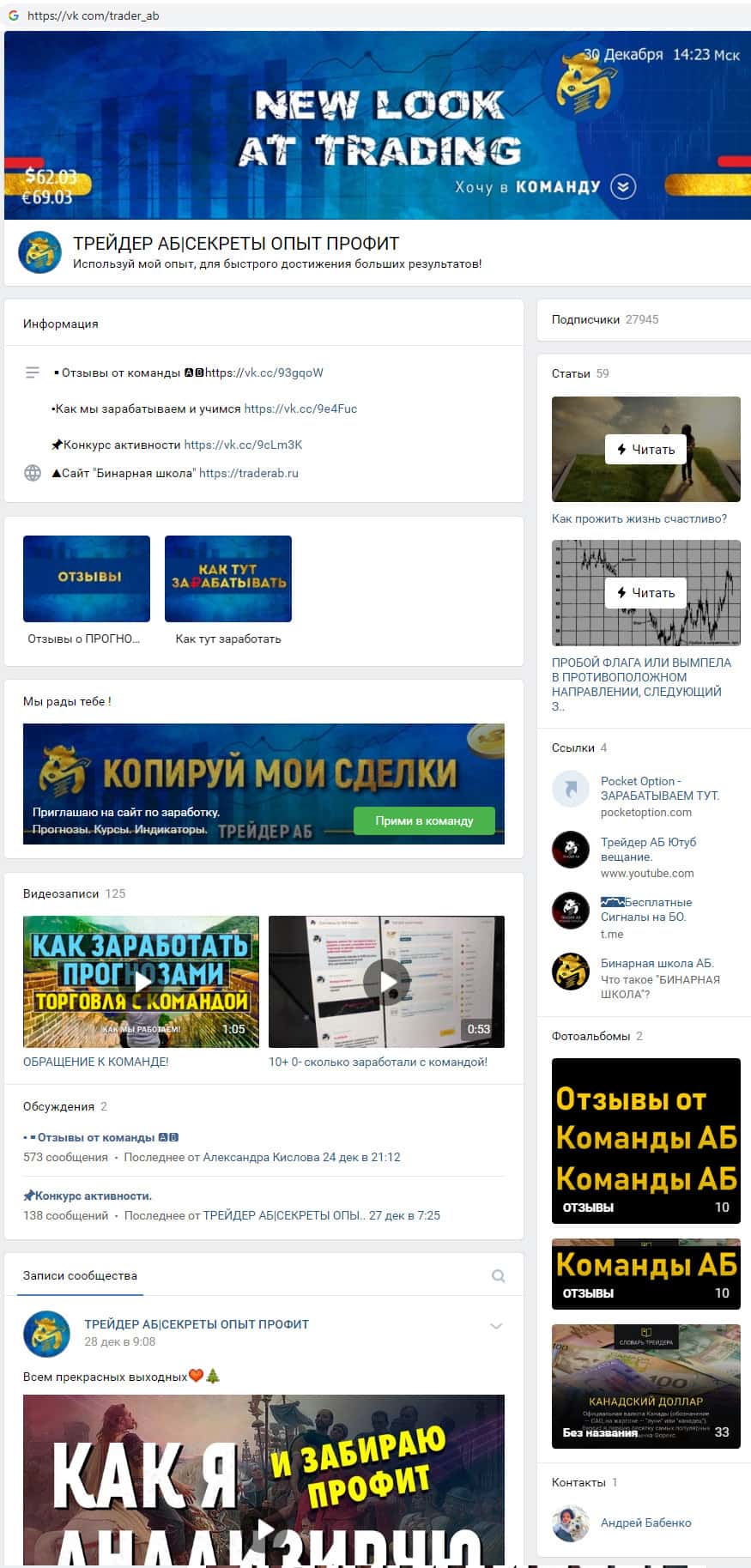 - Мошенники АБ Трейдер зарегистрировались на сайте Vk com