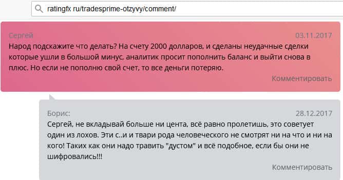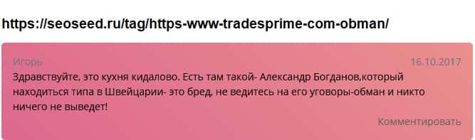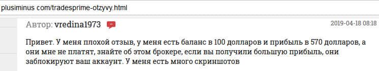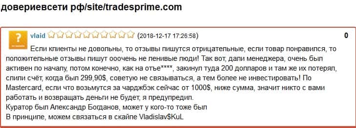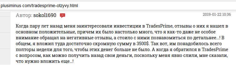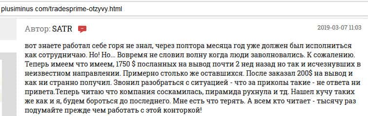 Инвестор Trades Prime не прислушался к отзывам людей и попал на 1750$