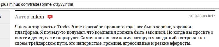 - Контора Трейдес Прайм сливала весь депозит, как только клиент заводил разговор о выводе