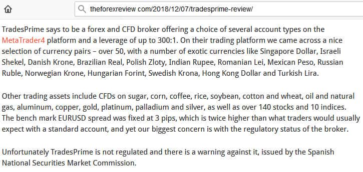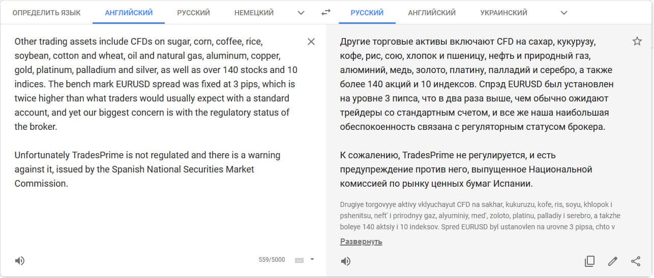 - Нацкомиссия по ценным бумагам Испании напрямую не рекомендовала работать с Trades Prime