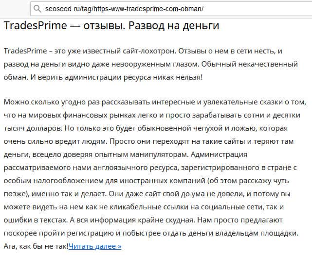 - Контора Трейдес Прайм - обманщики с большой буквы