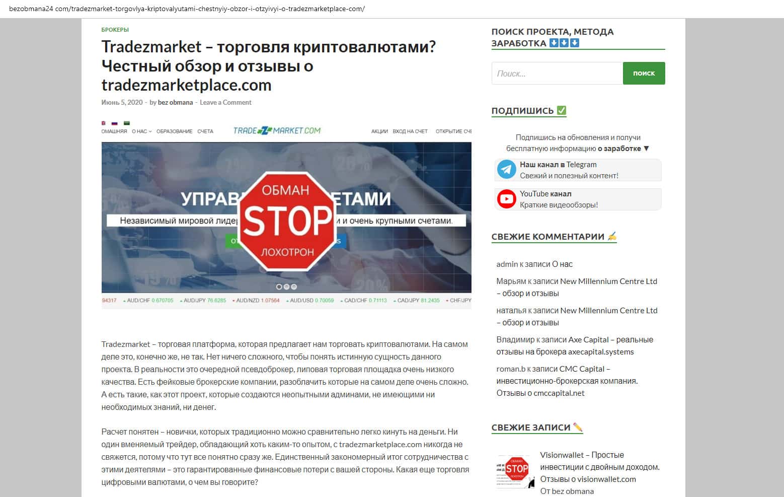 Bezobmana24 рассказал о мошеннической деятельности TradezMarket