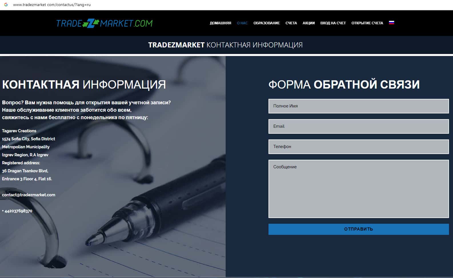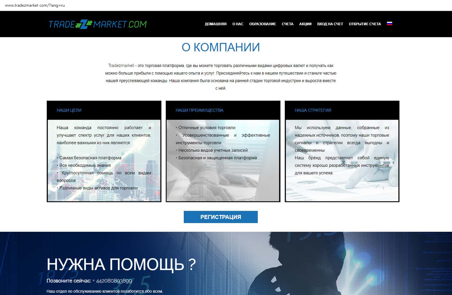 TradezMarket - лохотрон на финансовом рынке. Это ещё одна шарашка, которая обманывает наивных пользователей интернета, втирается к ним в доверие и, когда они полностью начинают им доверять, они их обворовывают. Никогда и, ни в коем случае, не ведитесь на разводы, подобные Трейдез Маркет.