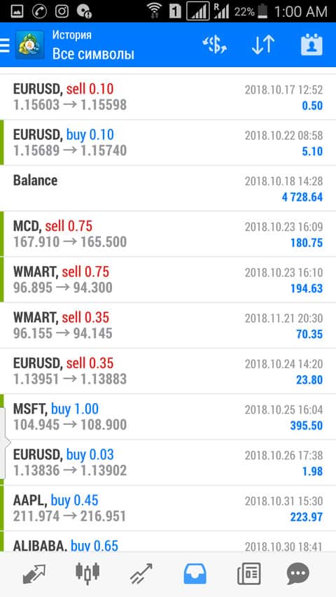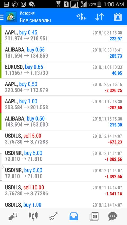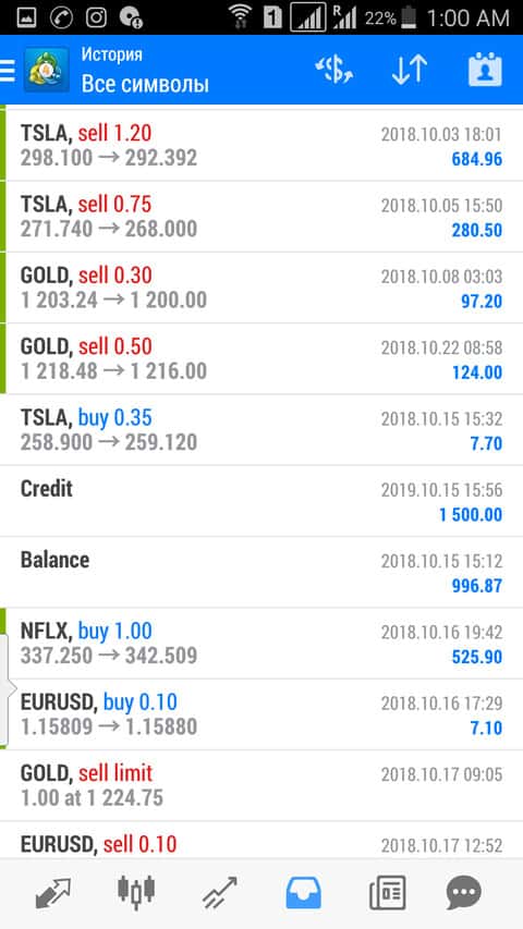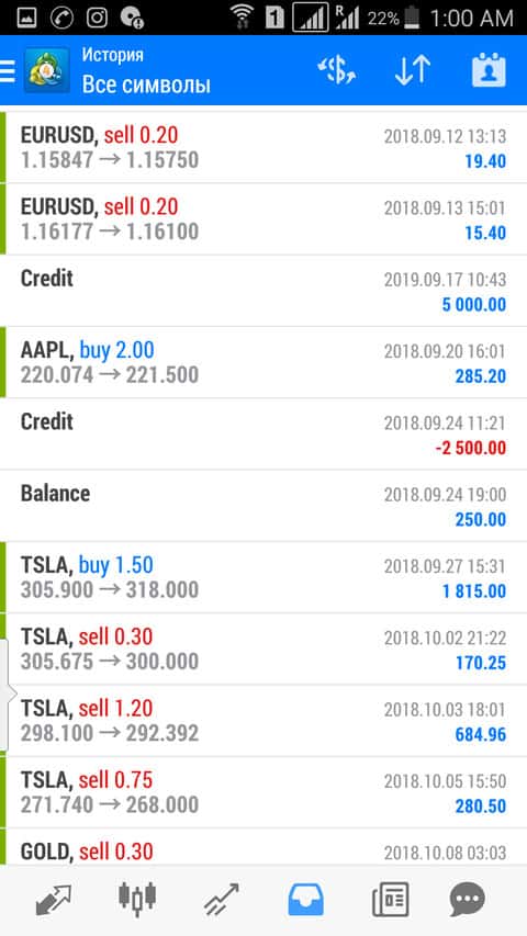 Ниже представлены транзакции по счету, которые были совершены клиентом брокерской кухни TradeGl.