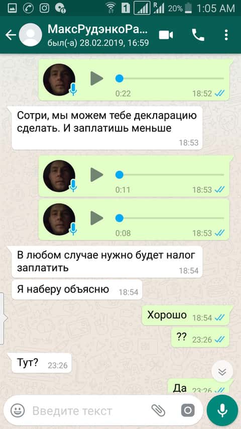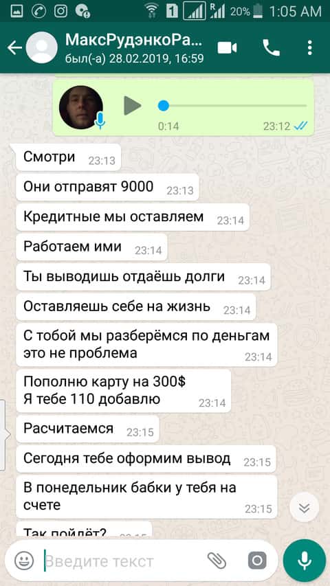 Как мы видим переписка клиента с аферистом TradeGL велась с через Ватсап.