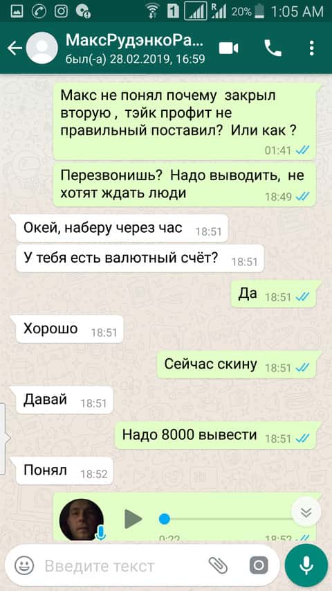 Ниже представлено начало переписки с аферистом по имени Макс Рудэнко, который представлял интерес форекс-кухни ТрейдГЛ.