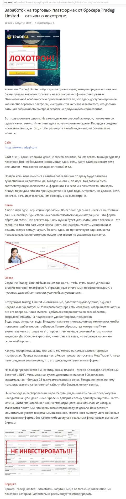 TradeGL являются обычными мошенниками Forex - вердикт специализированного сайта seoseed ru
