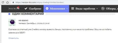 Негативные отзывы об жуликах ТрейдГЛ можно найти и на интернет странице ревизор-биз ком. Этого клиента мошенники TradeGL кинули стандартным для себя способом, а именно просто запретив вывод средств с баланса и просто игнорируют любые попытки связаться с ними.
