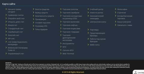 Заканчивается сайт кухонного брокера ТрейдГЛ типичной помойкой пунктов и ссылок для запудривания мозгов и отвлечения внимания. Самым интересным является то, что предупреждение о рисках написано на английском языке и размещено картинкой, опять же для ленивых пользователей.