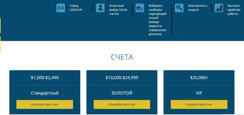 Дальше, как по шаблону на сайте аферистов ТрейдГЛ следует стандартный блок с ничем не обоснованными и не подкрепленными преимуществами. Реклама счетов один из явных признаков мошеннических намерений, ведь любой клиент должен рассчитывать на одинаковые условия торговли.
