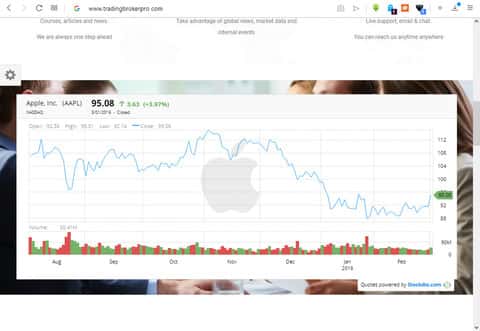 Для того, чтобы люди верили этим проходимцам, они разместили график курса акций Apple, чтобы людям больше желание было купить их, но курс не соответсвует действительному рыночному курсу, то есть курс таков, чтобы у людей не возникало вопросов, покупать или не покупать акции. При этом сейчас 2019 год, а курс 2016. Значит сайтом давно не занимались.Преимущества компании TradingBrokerPro