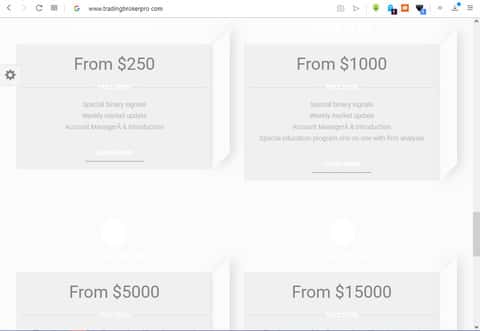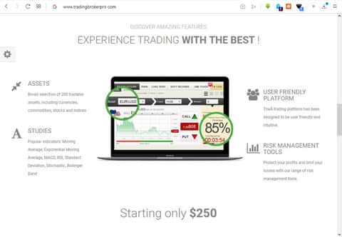 На сайте рассказывают о разных возможностях, которые регулируются с помощью начального вклада, а точнее стоимость курса. Минимальный вклад - 250$. Сумма немаленькая. Все возможности человек приобретает, начиная с 15000$, что очень большие деньги. Не рискуйте своими деньгами. Не отдавайте их жуликам.Снятие ответственности с TradeingBrokerPro
