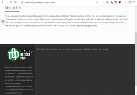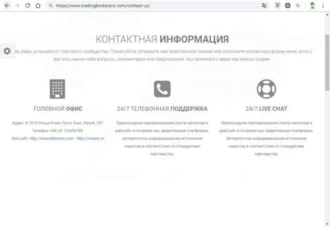 Внизу любой страницы их сайта можно найти слова об компании. Там рассказуют, что данная платформа образовательная и всё, что на ней - мнение, поэтому они не несут ответственности. Этим они снимают с себя какую-либо присягу перед судом.Контакты жуликов с Трейдинг Брокер Про