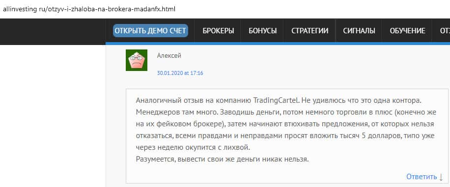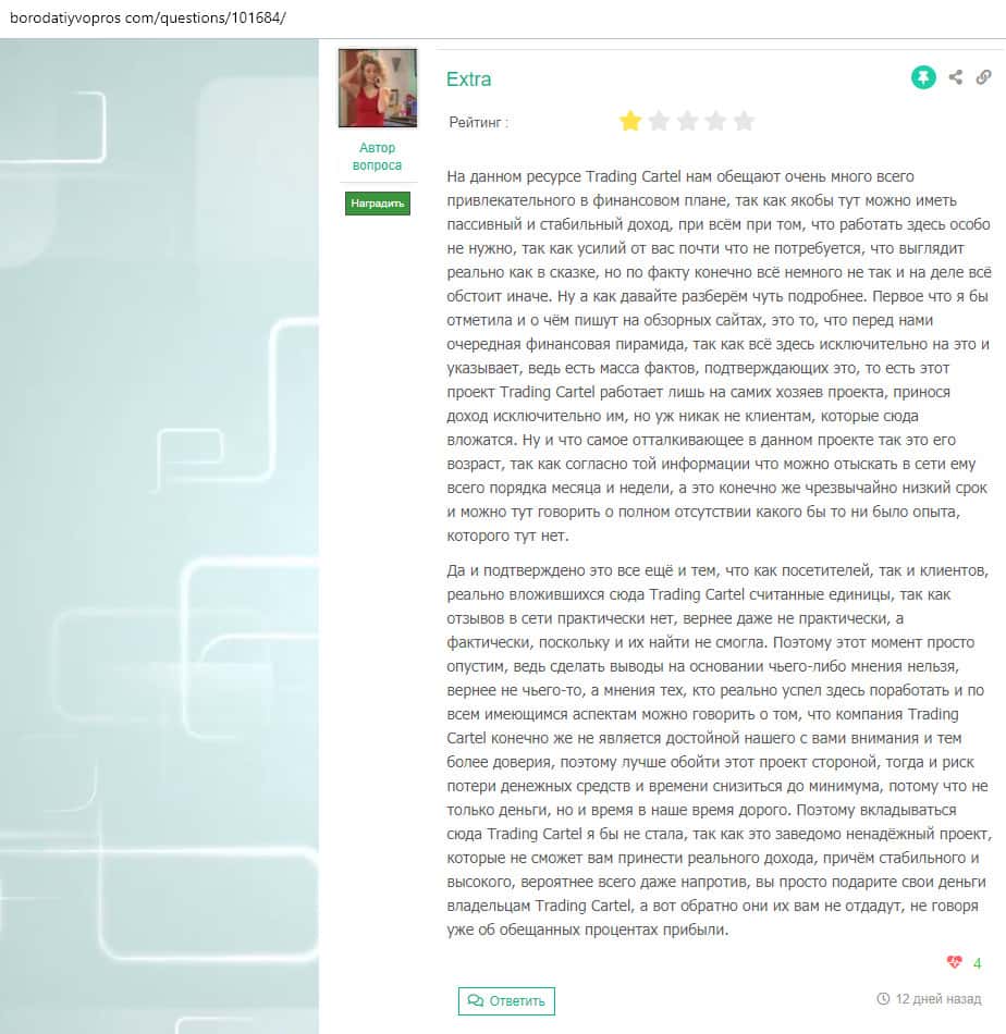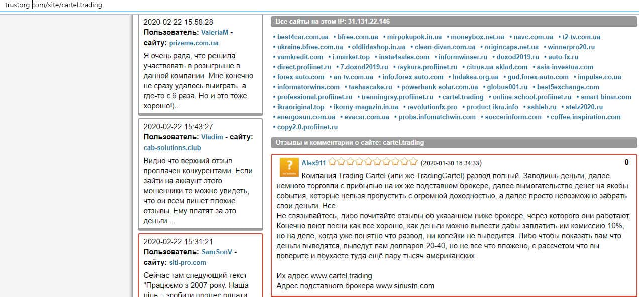 Очередной сайт-отзовик раскрыл правду о жульбанах Cartel Trading