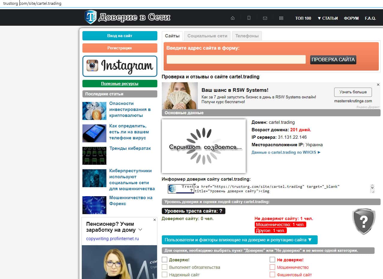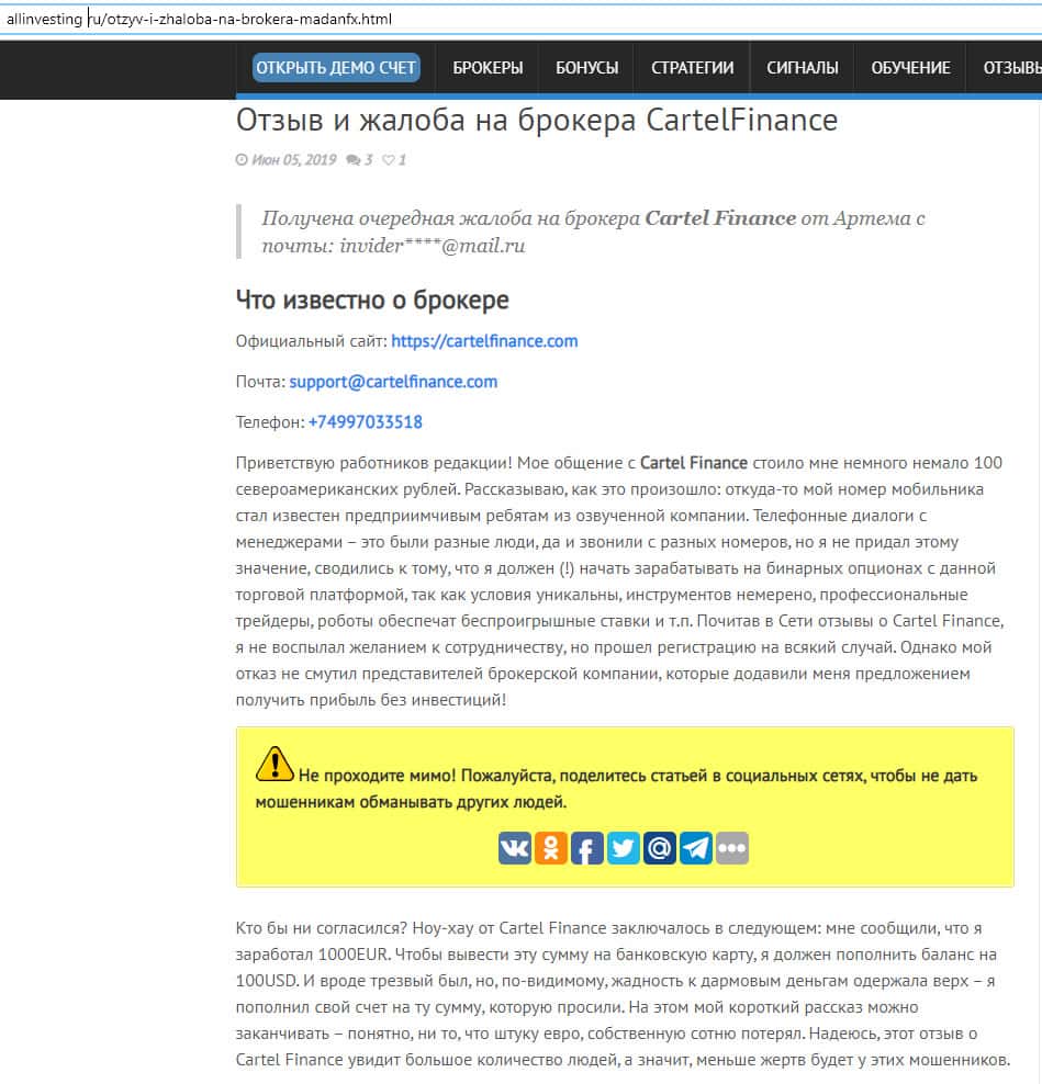 - Очередной сайт-отзовик раскрыл правду о жульбанах Cartel Trading