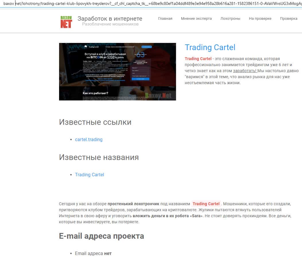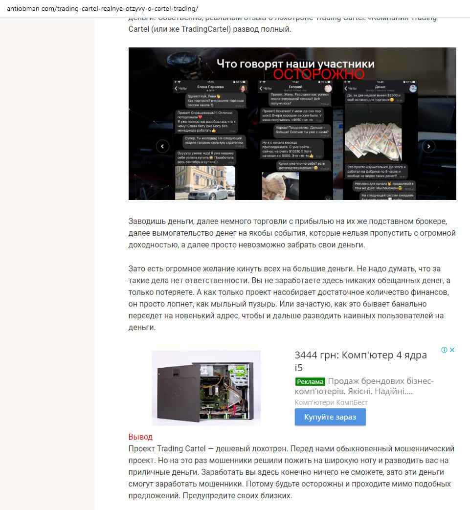 - Авторитетный ресурс советует обходить стороной аферистов Cartel Trading