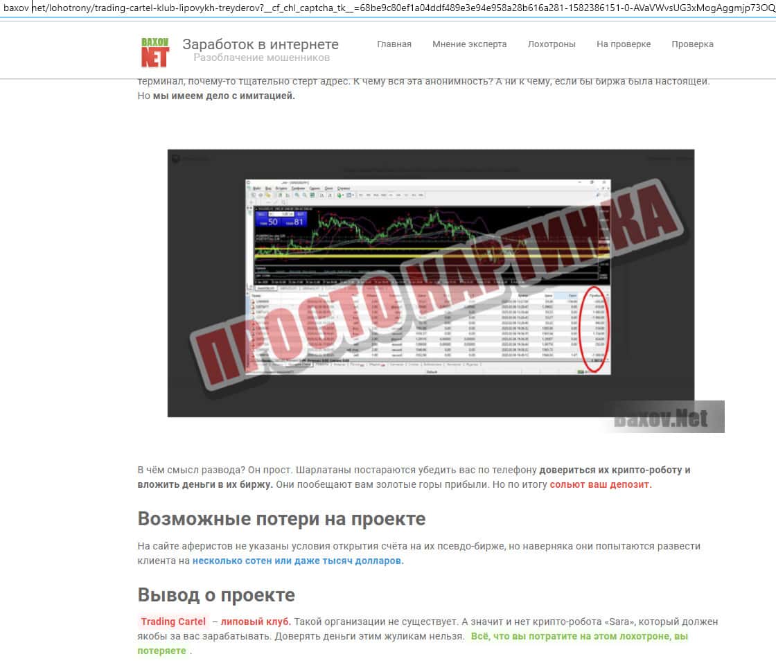 - Лохотрон Трейдинг Картель своровало идею о роботе Sara у других мошенников