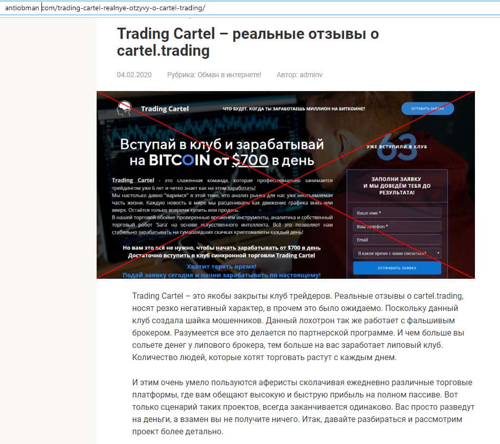 - Правдивый рассказ о работе лохотрона Трейдинг Картель