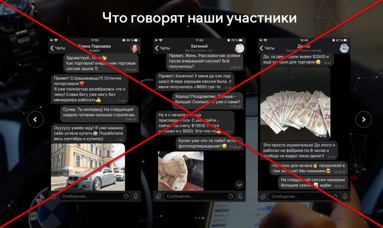 На своем сайте, шулерская организация Картель Трейдинг, организовала некоторую замануху в виде фейковых отзывов о том, что люди там зарабатывают. Если соотнести все эти заявления с реалиями жизни, то сразу становится понятно, что все накручено и выдумано. Так что не стоит вестись на этот бред.