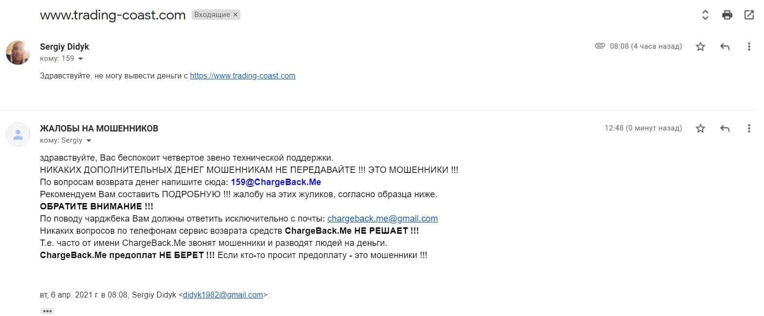 Далее предлагаем ознакомиться с отзывом о скам-конторе Trading Coast, которая обманывает людей на деньги и не выводит ни копейки.
