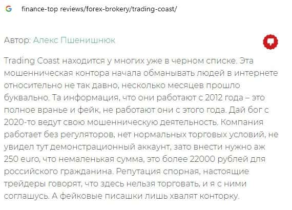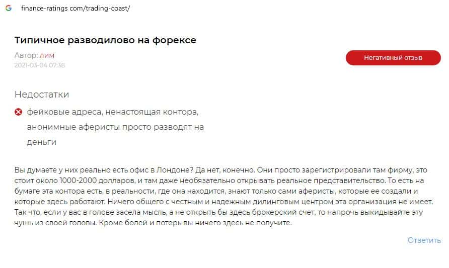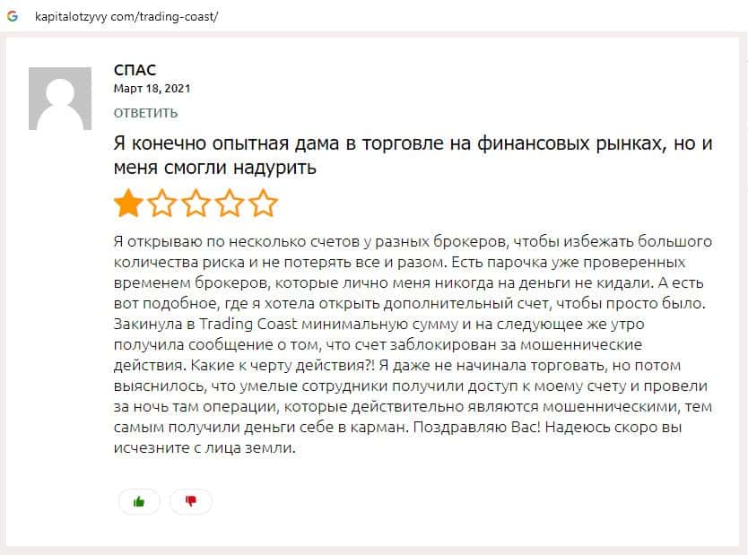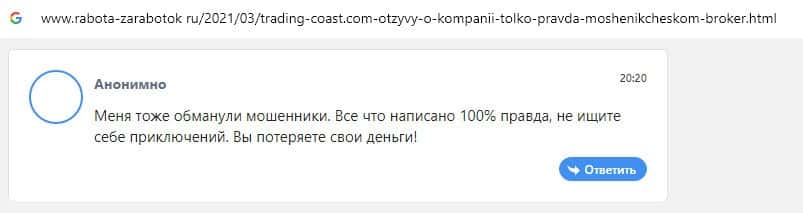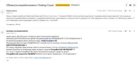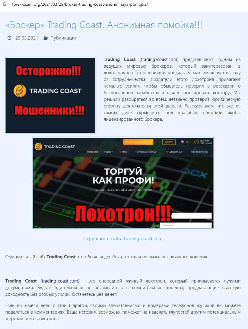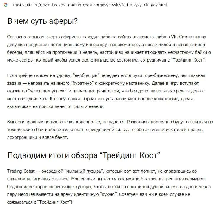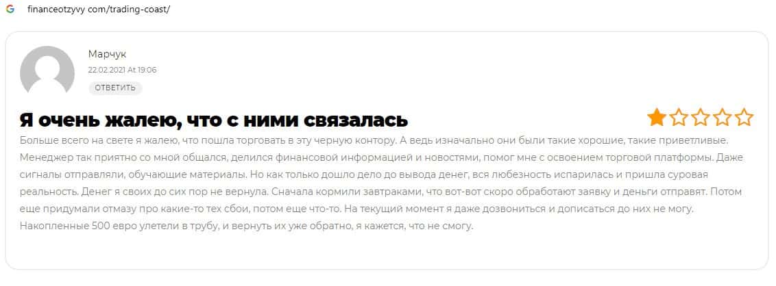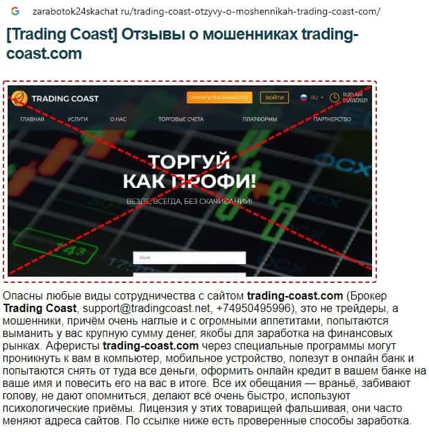 Отзывы о мошенниках Trading Coast, ныне присутствующие в сети-интернет