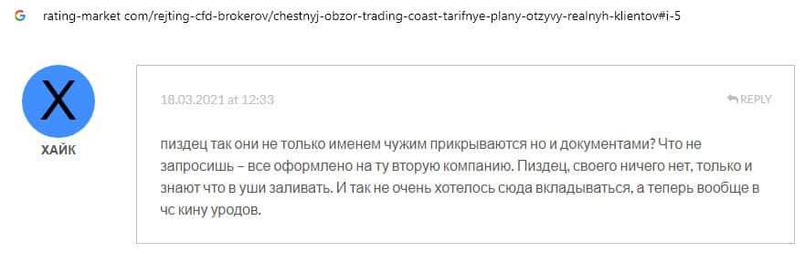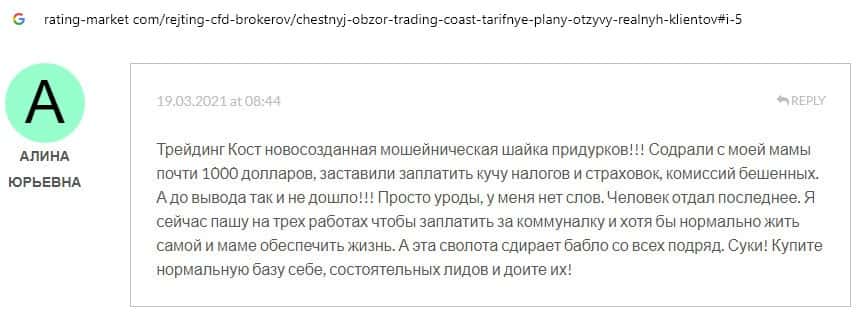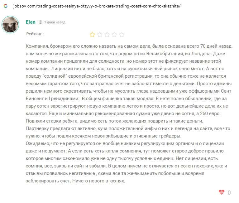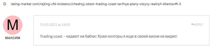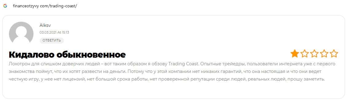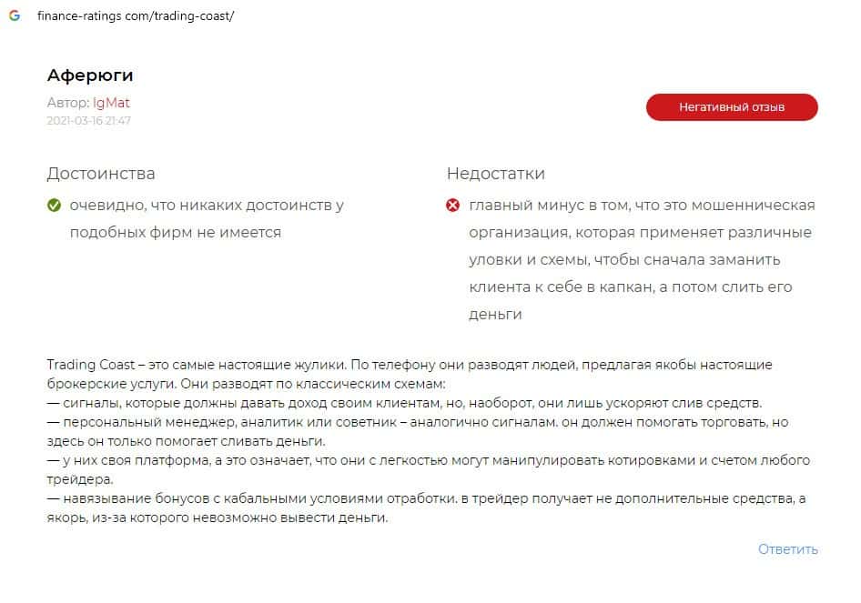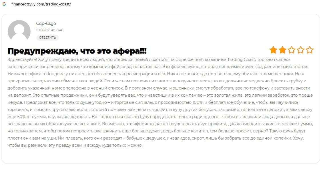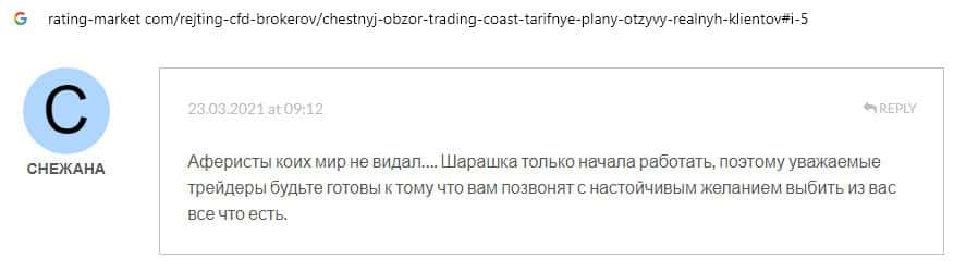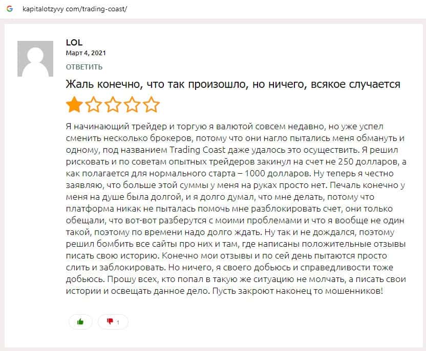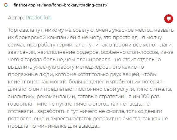 Отзывы о мошенниках Trading Coast, ныне присутствующие в сети-интернет