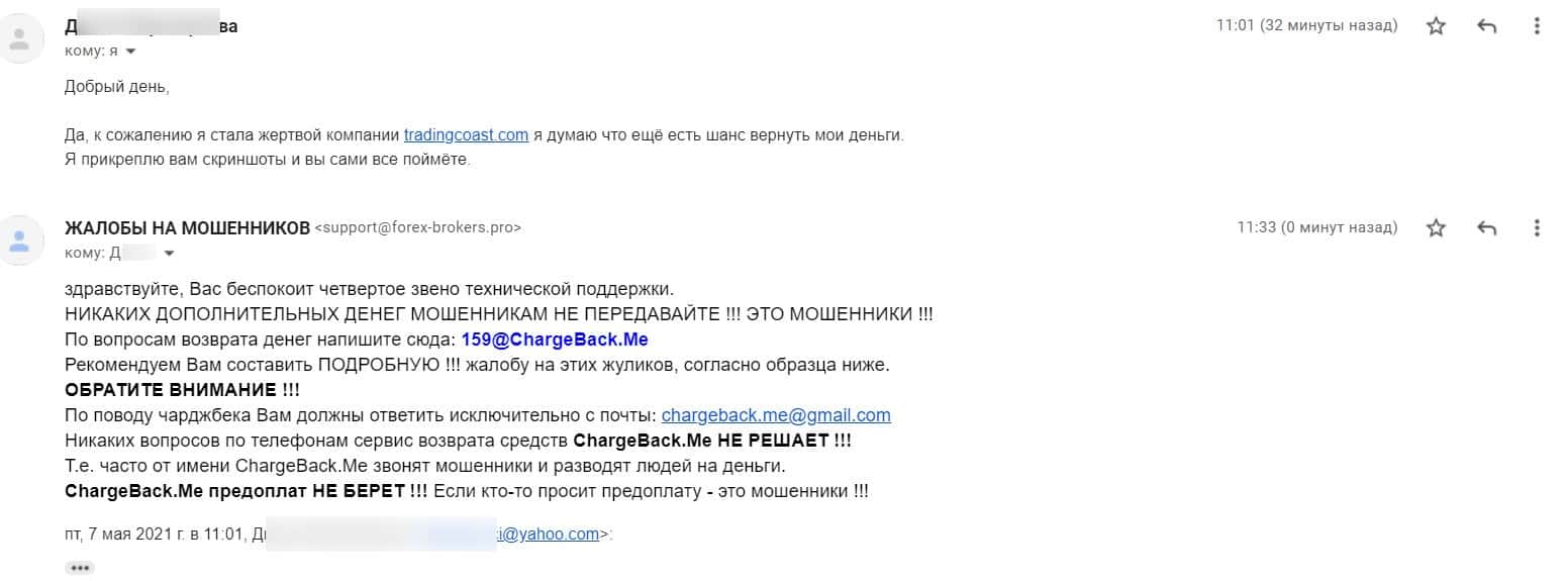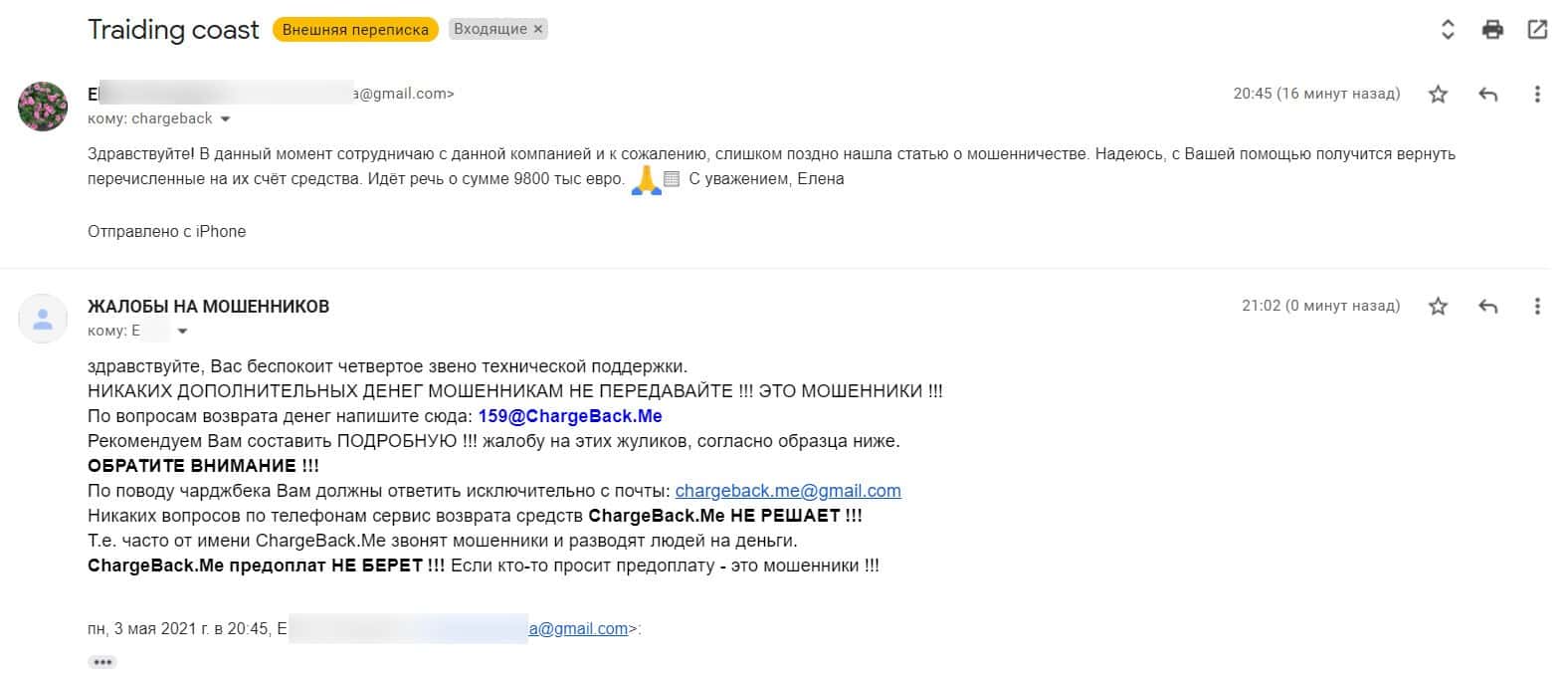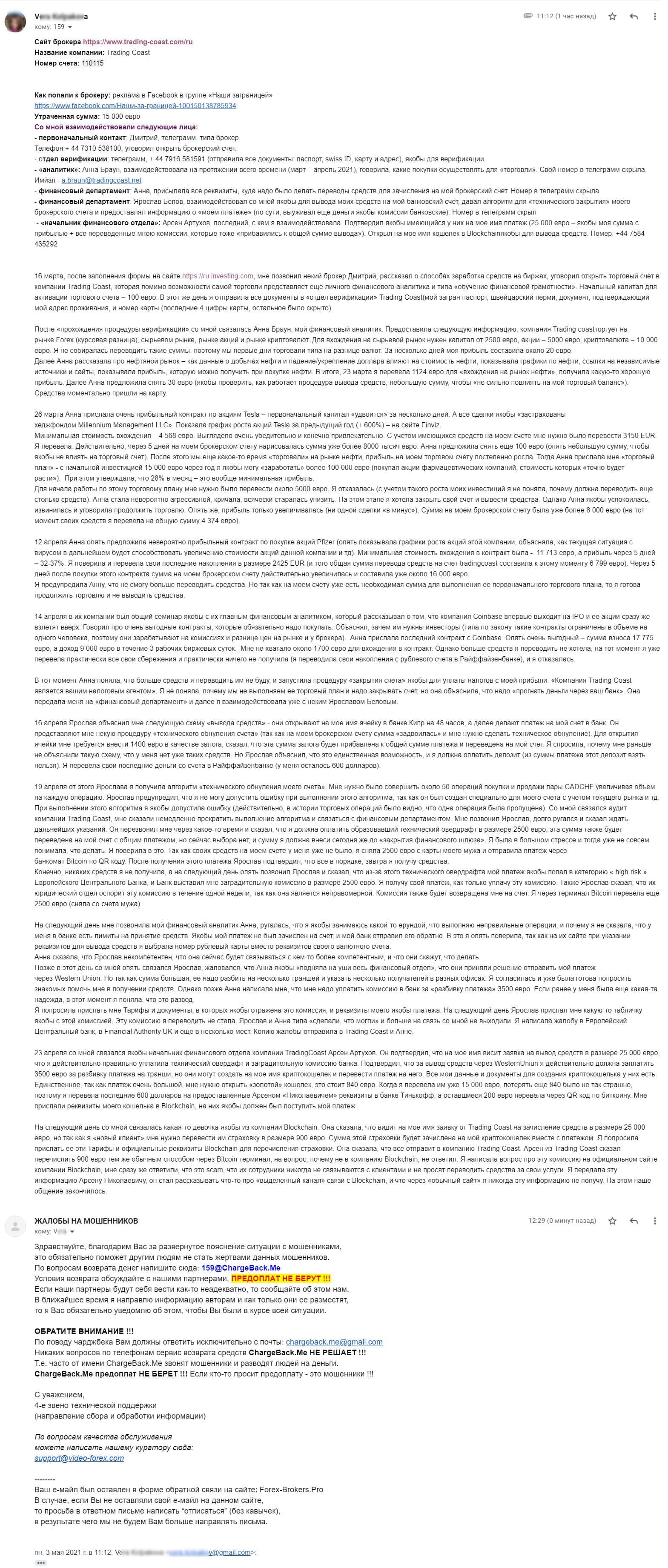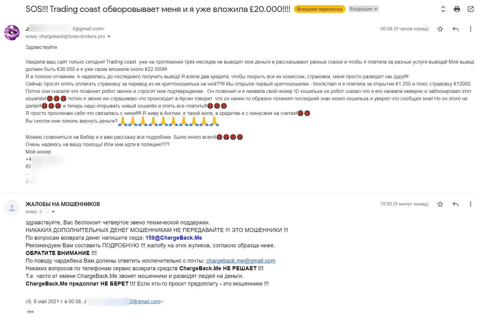 Очередная жалоба на лохотронщиков Трейдинг Коаст