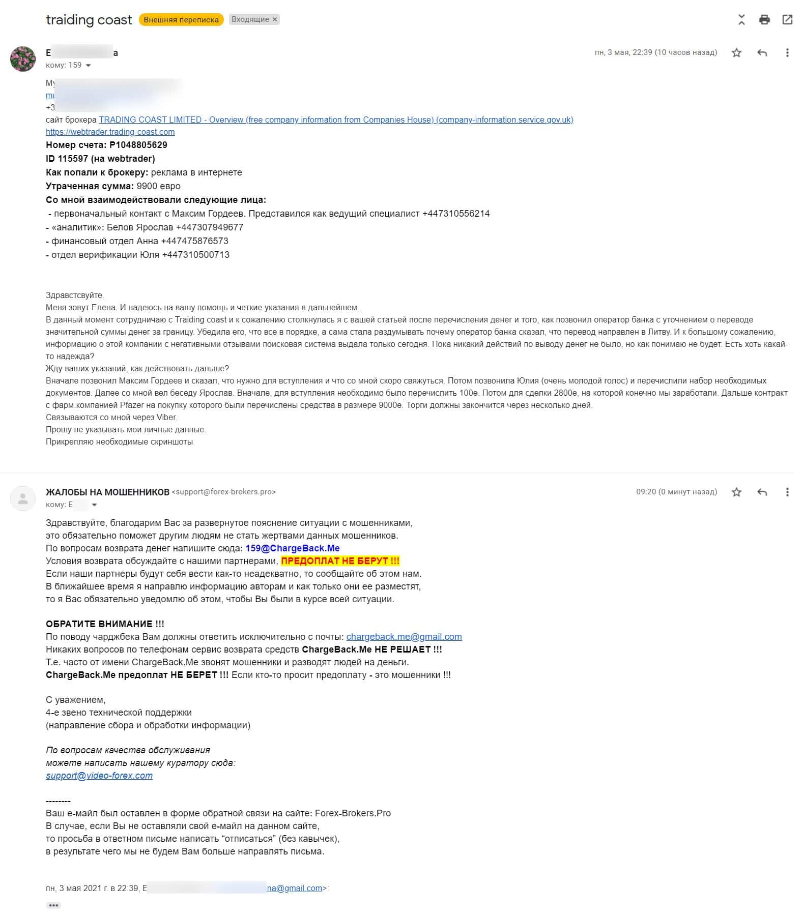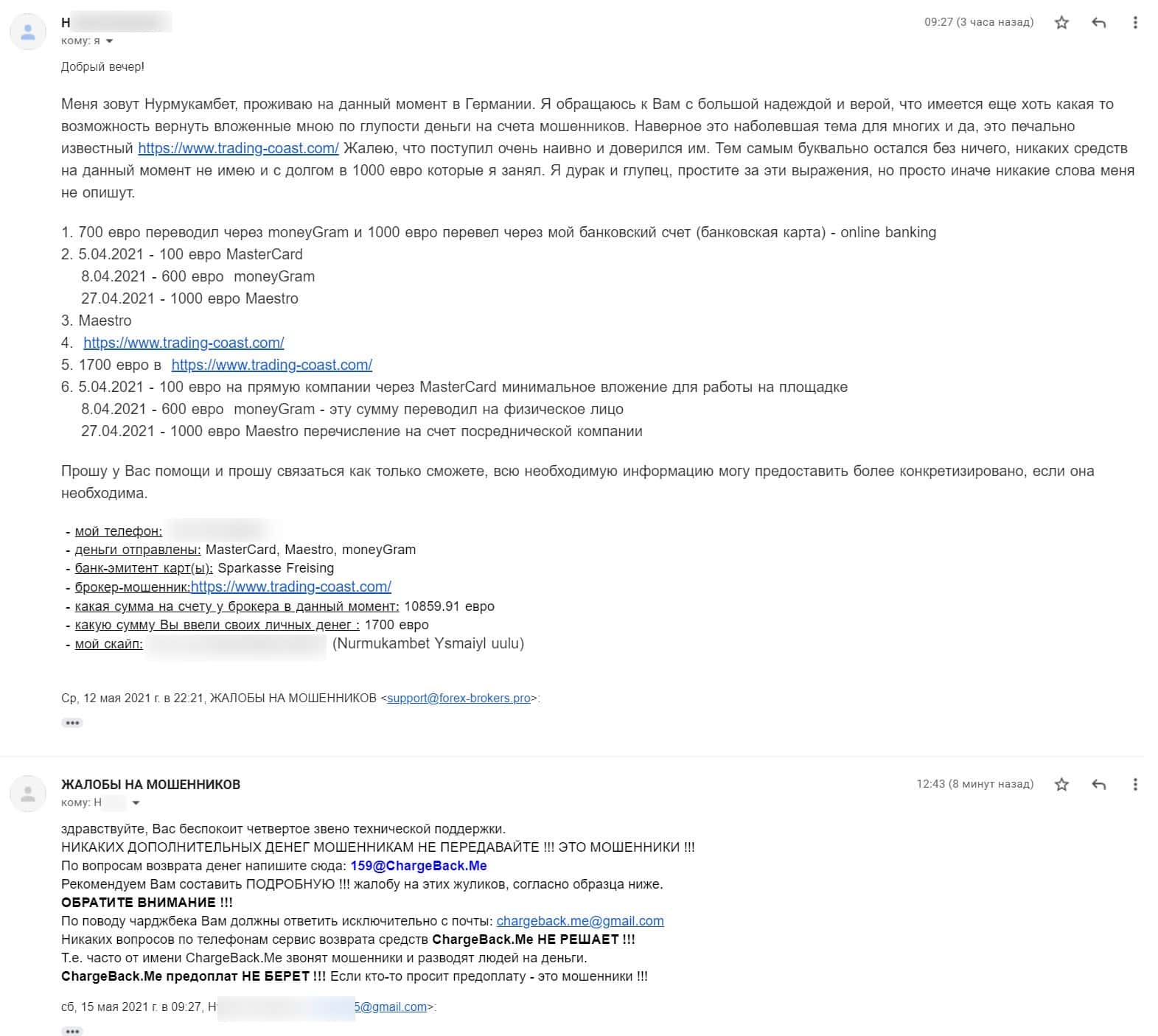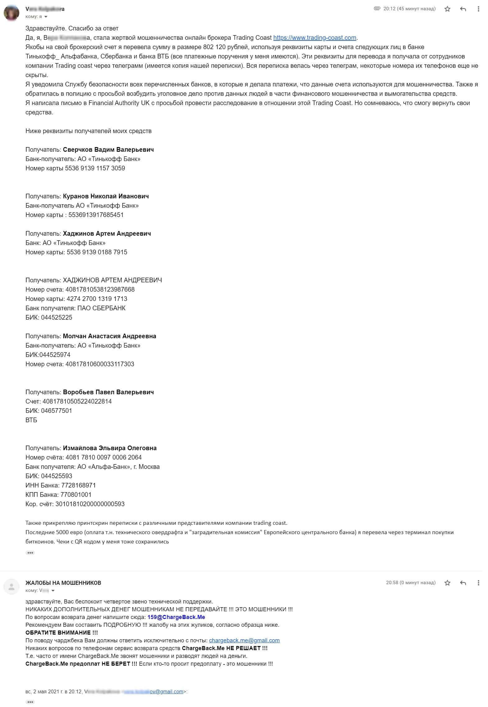 В данном разделе предлагаем ознакомиться с первоочередной и подробной жалобой об аферистах Трейдинг Коаст, которые кинули клиентку на 9900 евро.