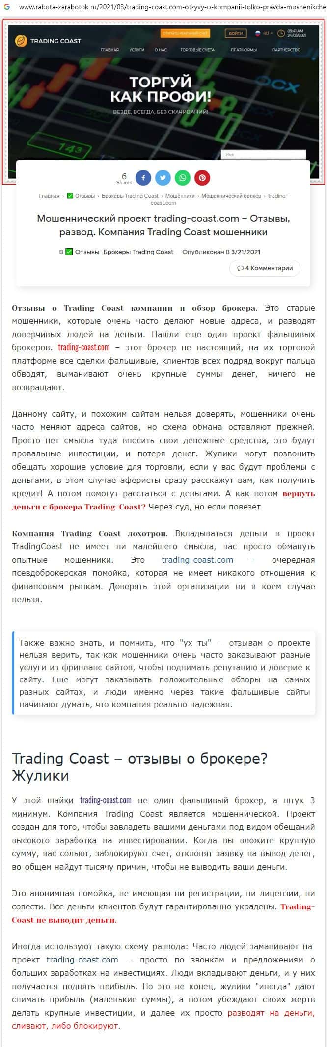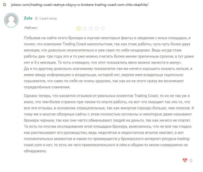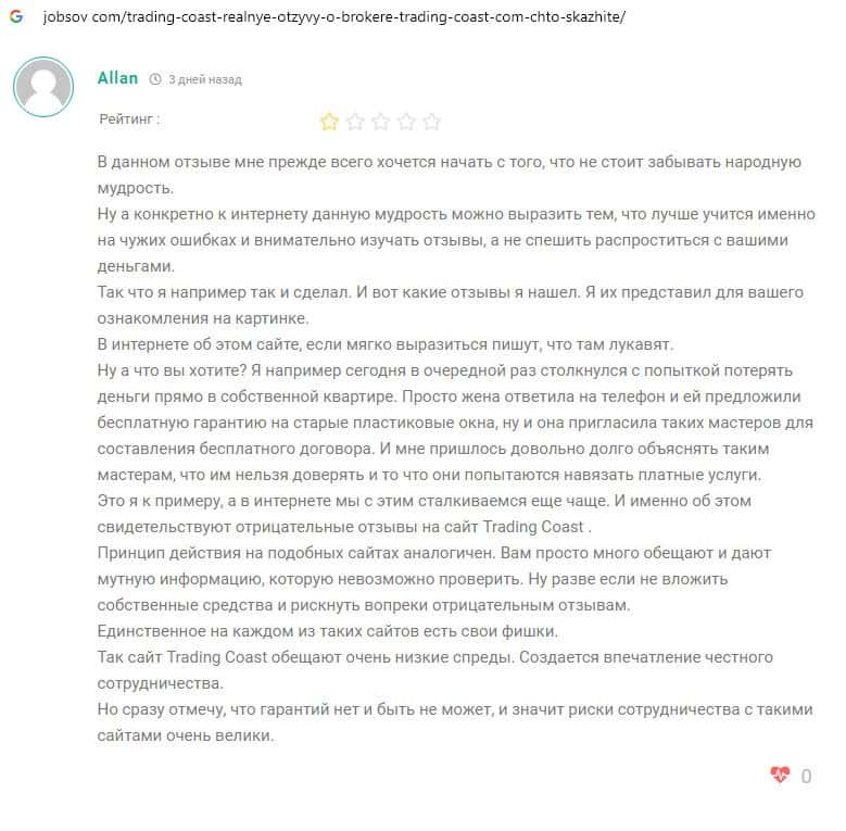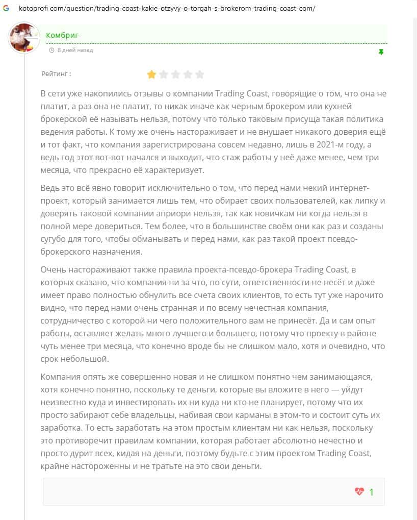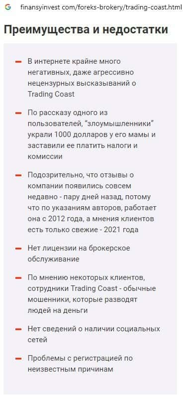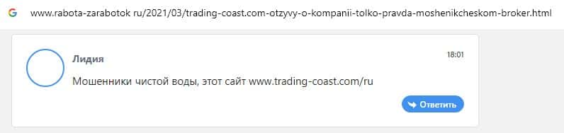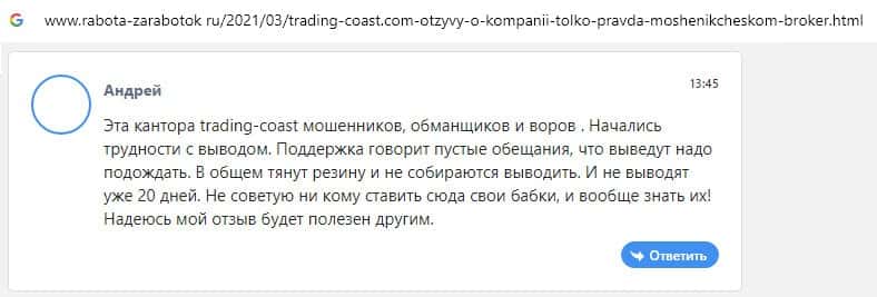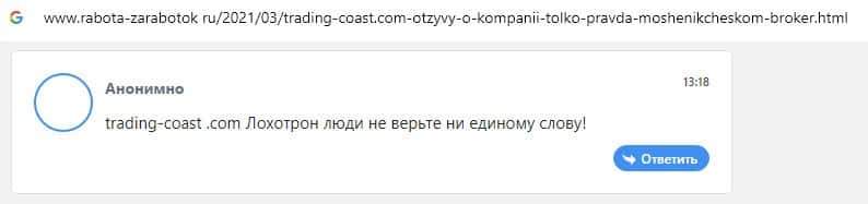 - Отзывы о мошенниках Trading Coast, ныне присутствующие в сети-интернет